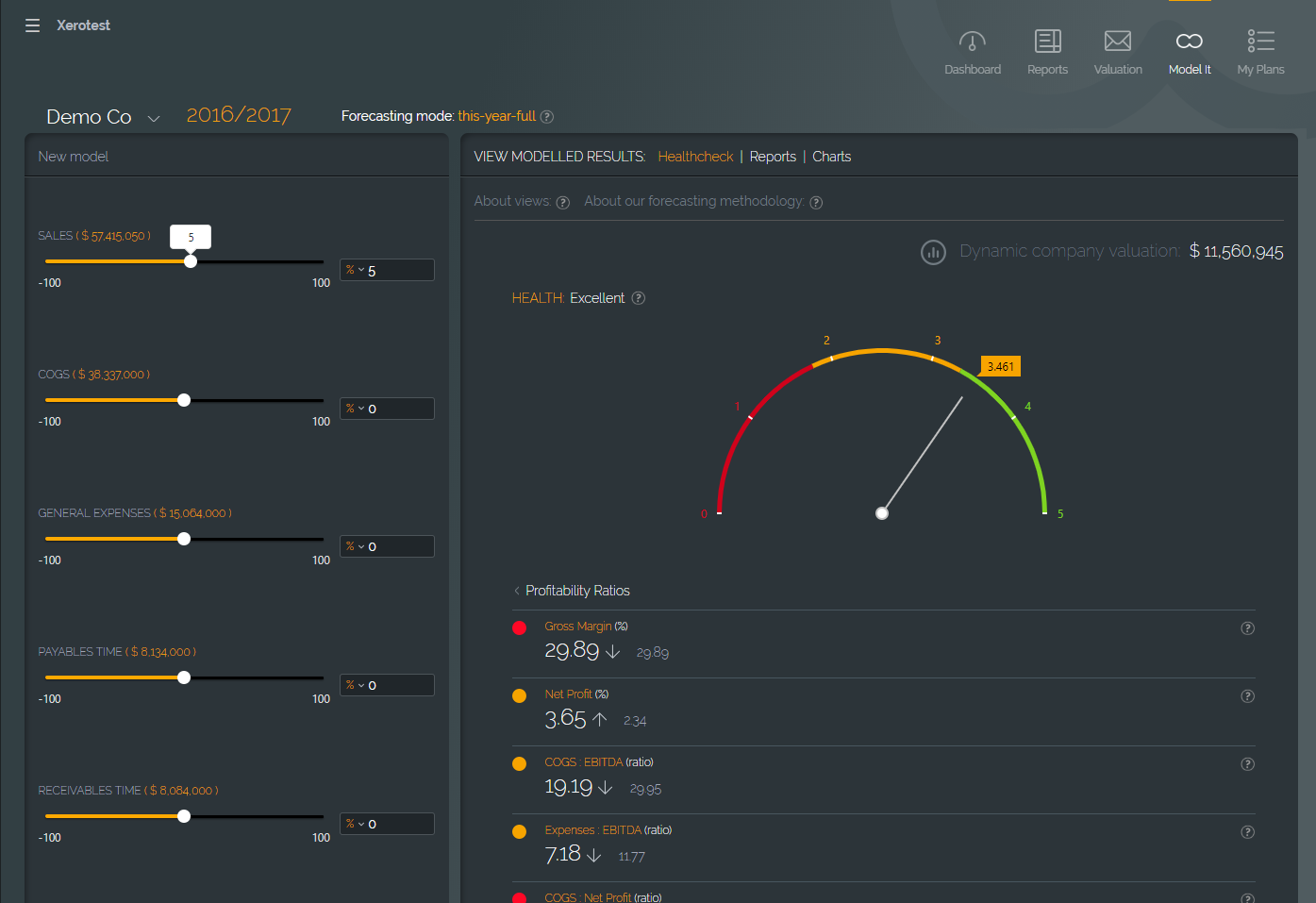 Quickly and powerfully start forecasting your portfolio's future performance and targets. Using simple sliders, instantly assess the effect changes to the business will have on future P and L, Balance Sheet, KPIs, and valuation